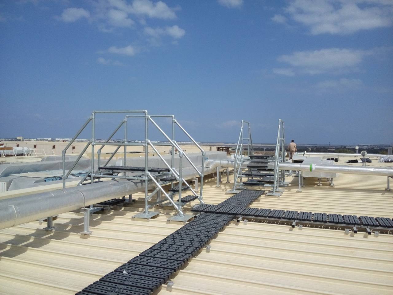 Our rooftop crossovers are designed to comply with current regulations and standards such as the Work at Height Regulations, BS5395: Part 3 and EN: 14122, BS 1139-6:2005, PAS 250 and OSHA.